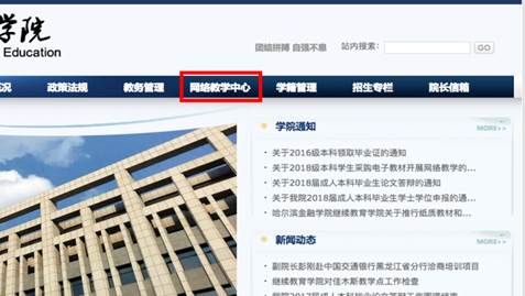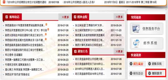 方式1:登录“哈尔滨金融学院”官网首页(http://www.hrbfu.edu.cn)